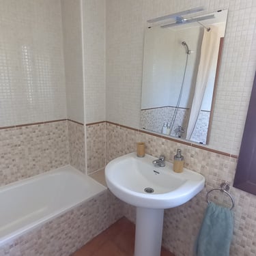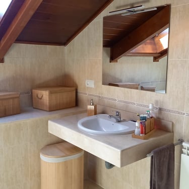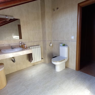 Dos baños completamente equipados con inodoro, lavabo, bañera y bidé. Secador en el baño de arriba