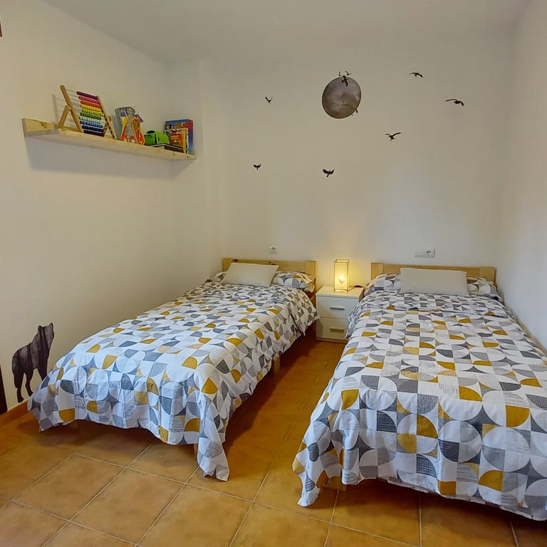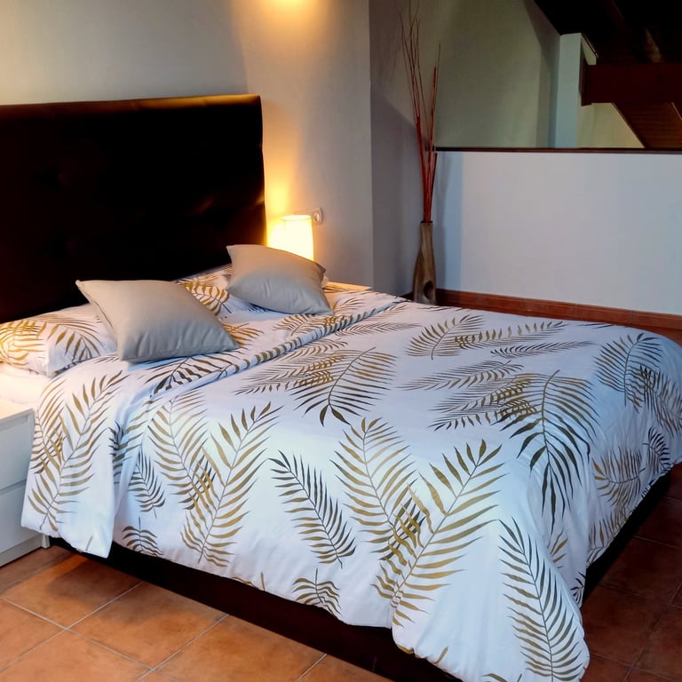 El dúplex tiene capacidad para 5 huéspedes distribuidos en: dormitorio principal con cama de matrimonio, dormitorio con dos camas de 90 y dormitorio con cama de 90.